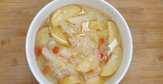 结合苹果与雪梨的优点,银耳和枸杞也加入了这款汤品的食材行列。银耳含有丰富的植物胶质,能够有效润肺、清热,增加身体的免疫力。枸杞则是广为人知的补肝肾、明目、增强免疫功能的食材,它可以调节身体的各项机能,帮助恢复体力与活力。当这几种食材相互配合,既能发挥各自的功效,又能综合作用,增强止咳消炎、防感冒的效果。